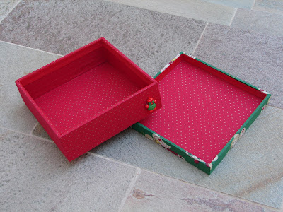 Caixa organizer em MDF revestida interna e externamente pela técnica de forração francesa em tecido 100% algodão em padronagem natalina. O acabamento interno é feito em viés e um botãozinho em forma de boneco de neve dá o toque final à peça.